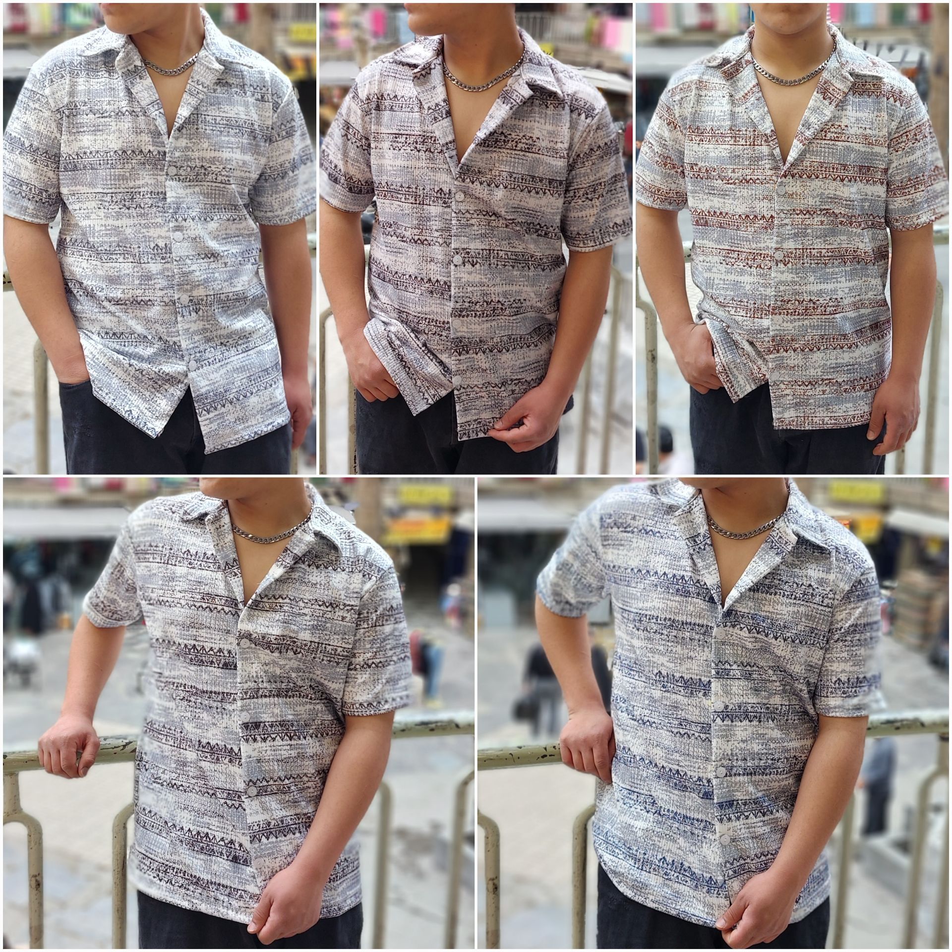پیراهن آستین کوتاه مراکشی یقه انگلیسی طرح دار